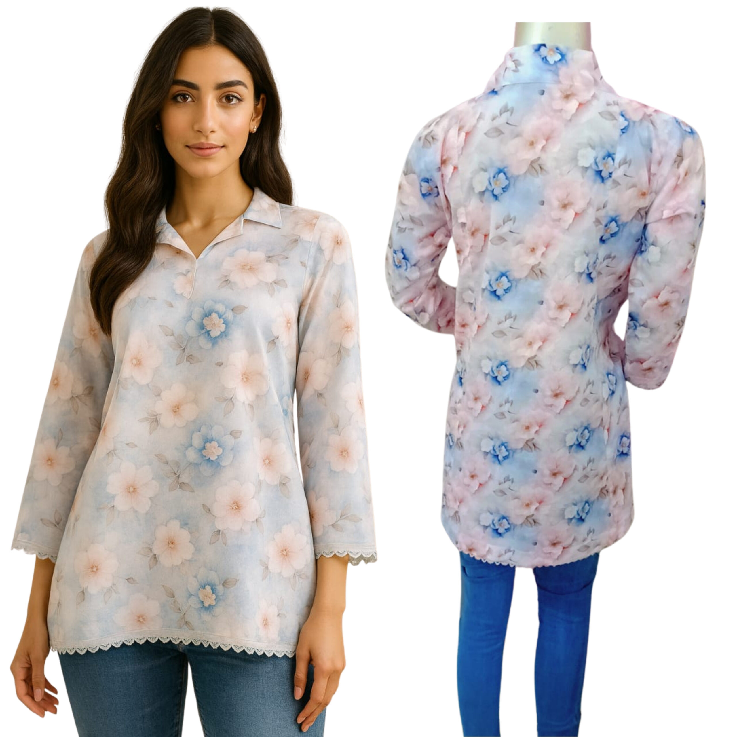Bring a fresh and soft look to your day with Morning Dew, a beautifully designed kurtee